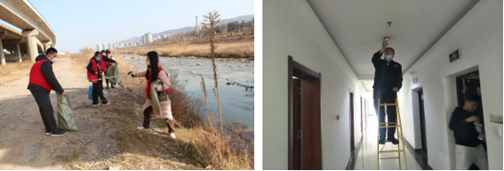 清除公園綠地枯枝敗葉、清理河道內生活垃圾、清掃人行道路面、疏通小區排洪渠、對管轄小區內孤寡老人和殘疾人家庭開(kāi)展上門(mén)服務(wù)……33日,在藉河二期景觀(guān)沿線(xiàn)、成紀大道道路兩側、和諧家園、天河家園等多個(gè)場(chǎng)所出現了一抹抹靚麗的“城投志愿紅”。